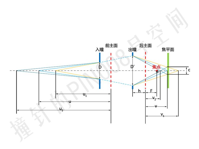 影響可允許彌散圓擴散幅度的是出瞳而非入瞳,而光圈值是由鏡頭的效光圈孔徑,即如入瞳孔徑決定的,所以長焦鏡頭的景深比薄透鏡景深公式算出來的要寬,而廣角鏡頭的景深比公式算出來的淺。所以某些廣角鏡頭也還是有一些景深控制能力的。BTW,除了瞳徑比問題以外,鏡頭光學結構的前主面、主面間距、對焦后鏡頭的實際焦距、軸上和軸外點的光路差孔徑差都是用戶難以確定的。